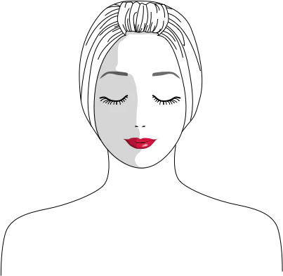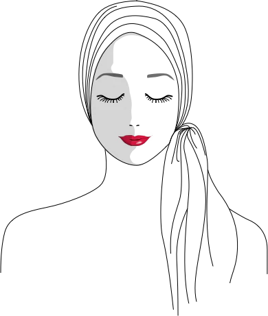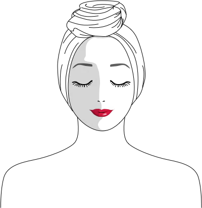 - Pull remaining flap draping on your forehead up and over the front knot and tuck it in behind the knot.